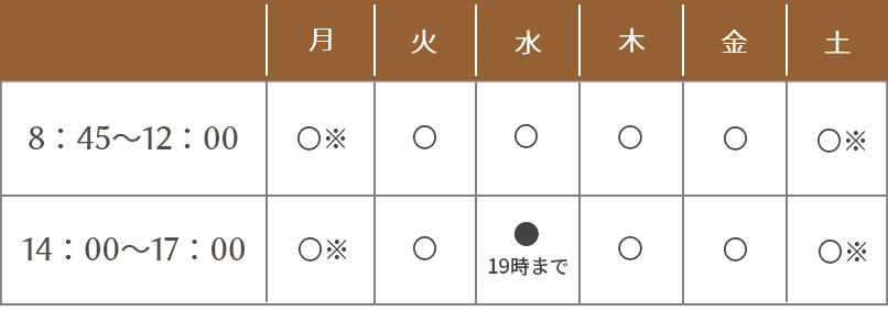 ※土曜:第2・4土曜のみ診療
